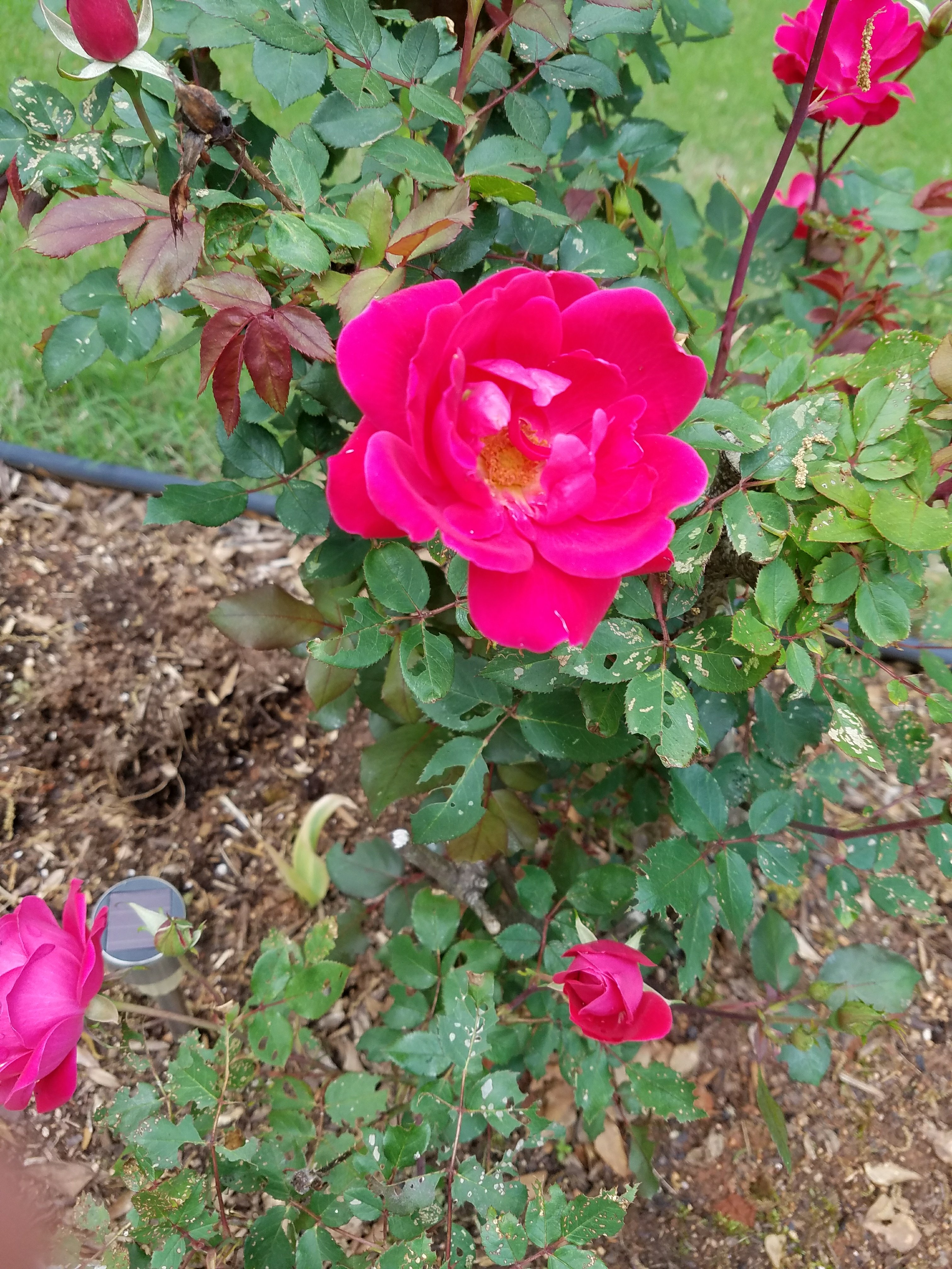 We moved in our house 2 summers ago.There were two rose bushes at the corner of the patio. One, on the sunny side, thrives. This bush on the opposite corner, struggled to survive, competing with the roots of a crab apple tree and a downspout that would soak the poor rose when it rained. And, it got little to no sun. It was pitiful.