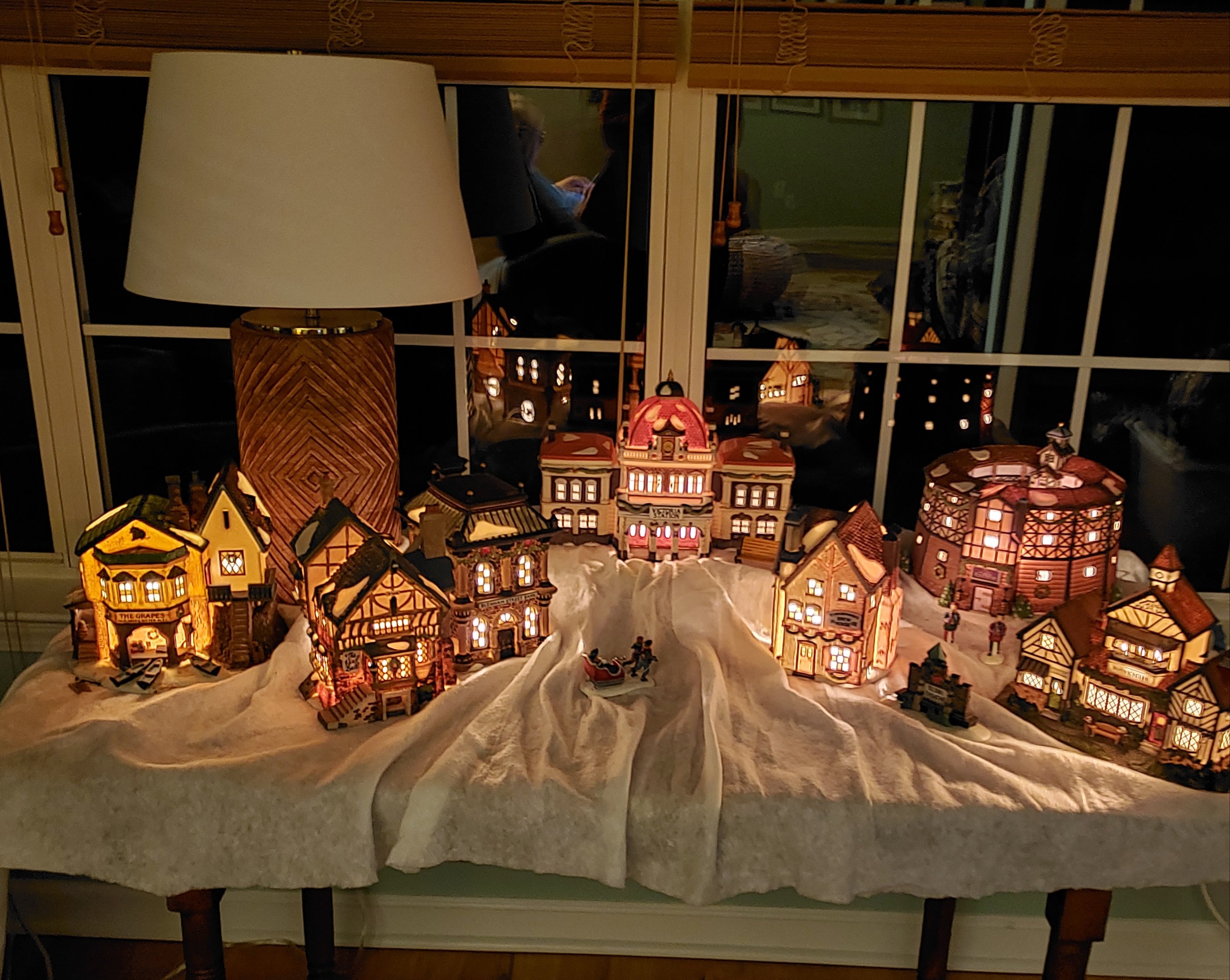 Lights shone in all the shops, pubs, at the theater, even at the golf clubhouse. A young couple maneuvered a horse-drawn sleigh as they rushed through town. Nicoli called but they appeared not to hear or see him, they just rushed on. Nicoli wondered, “Where is everyone? It is cold, but people in Syracuse don’t let that stop them, they still go out.”