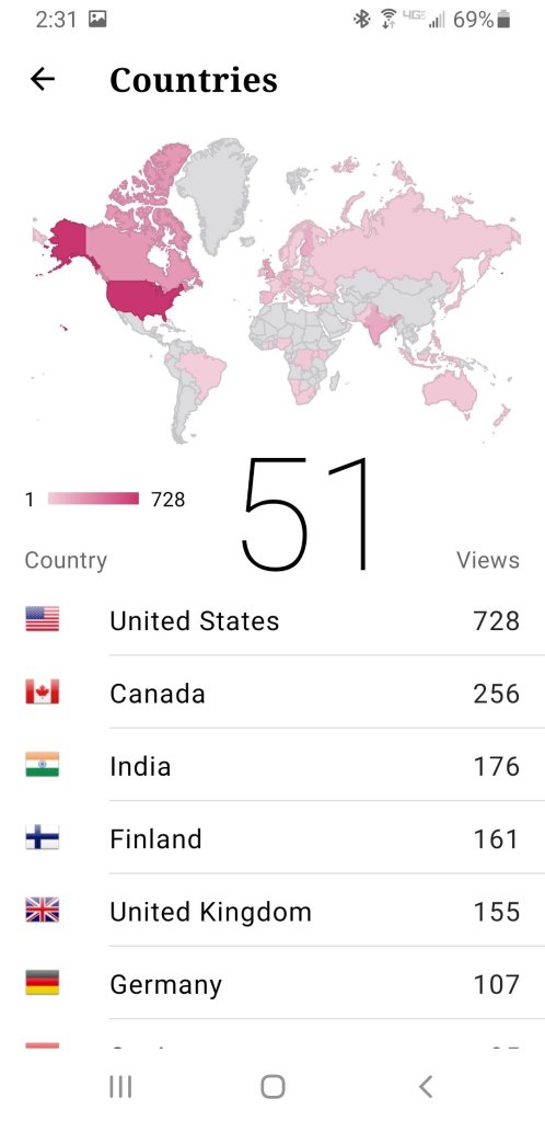 When I create content, I try to keep in mind that people all around the world may be seeing and reading my posts. I quite often will let Bud in on where my visitors are from; he is impressed. Over the past 10 months, I have had visitors from: