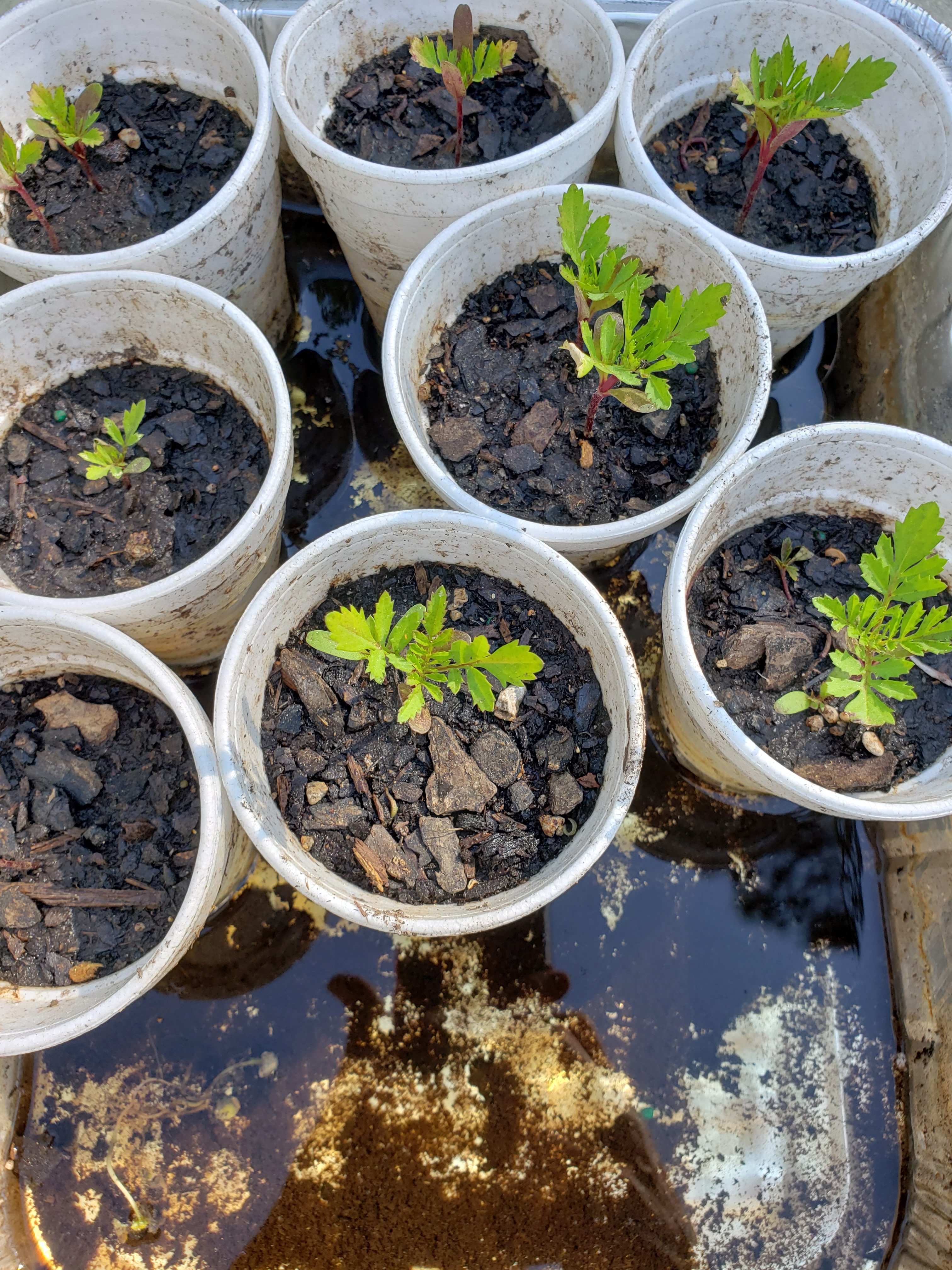 A combination of the two. The garlic is growing in the ground. The tomatoes and peppers will be in pots on the deck where they will get more sun.