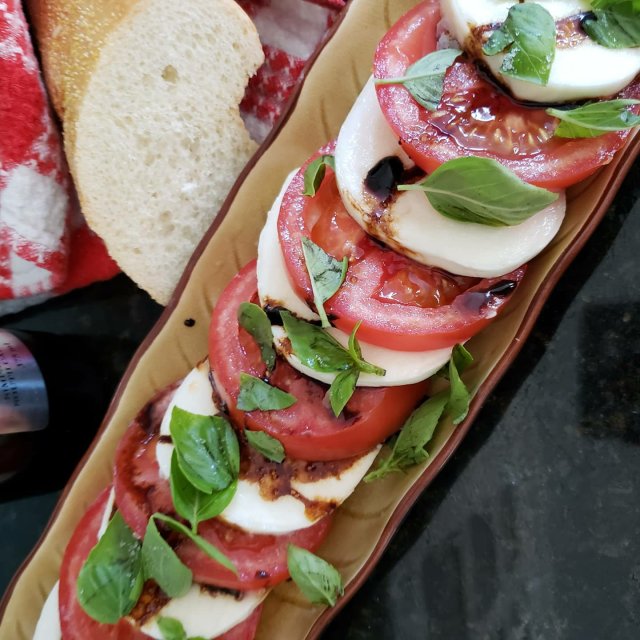 So grab your tomatoes, mozzarella, basil, olive oil, balsamic vinegar and salt for dinner in 10!