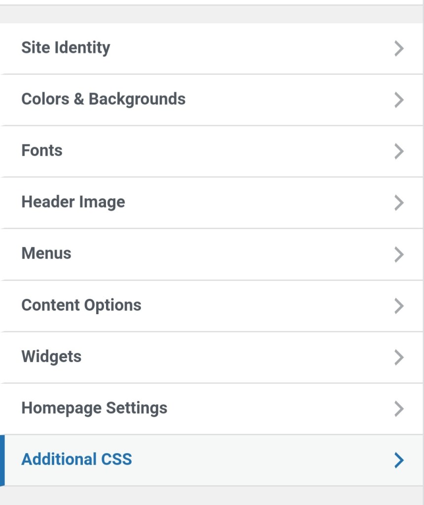 A menu list comes up with the Additional CSS tab. Hit this option.