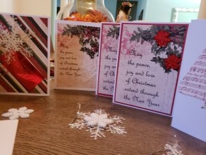 In years’ past, I would decorate a table top and fill it with cards, the Hallmark cards taking space front row, center. It makes a festive addition to our home and we enjoy seeing the smiling faces.