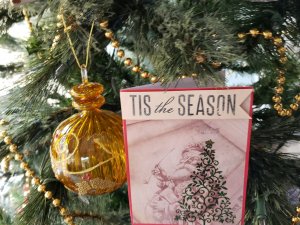 It’s 2020. Very little decorating has been done here this year, but we do have an artificial Christmas tree, the bargain store, end-of-season variety, that needs a lot of fluffing of the branches to fill the gaps. Not much fluffing happened this year, so there are a lot of holes. WA-LA! I will use the cards for decorations and to fill the holes. Hopefully more cards will come.