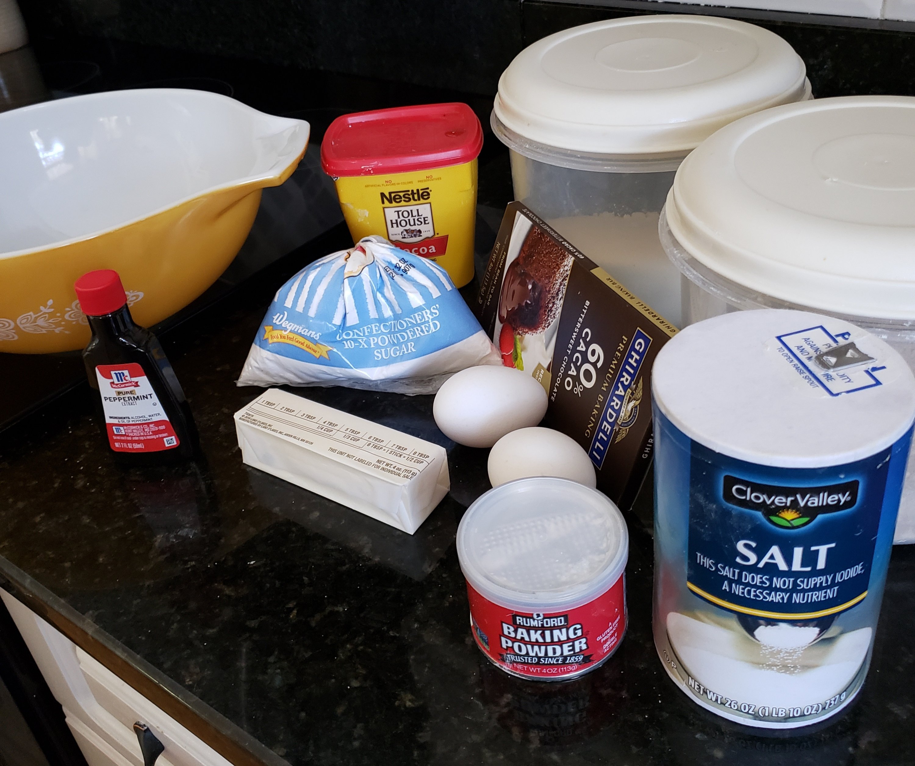 The chocolate crackle cookie recipe has been around for ages and ages. This is a slight variation made for the holidays by replacing the vanilla extract with peppermint extract. So, if you prefer, use vanilla instead of peppermint. The dough comes together super quick and easy. To get the crackle effect, the dough is dropped into powdered sugar, then rolled and rerolled to coat – a bit messy, but worth the effort. Crushed peppermint candies can be sprinkled on top when cookies are flavored with peppermint.