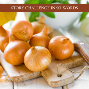 February 27, 2023, prompt: In 99 words (no more, no less), write a story about a golden onion. Any golden onion. One planted or harvested. An onion chopped for a meal. How can you use an onion as a prop in a character’s hand? Go where the prompt leads!
