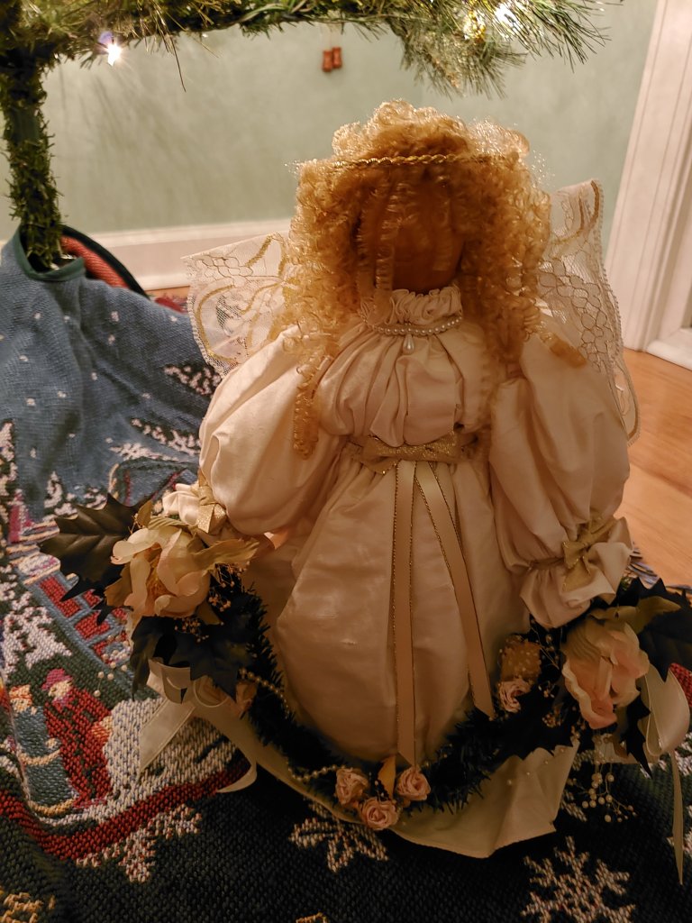 A one-of-a-kind Christmas gift made by sister from my wedding dress. It is very speecial! To know my sister is to know how curious this gift was. She was complicated.
